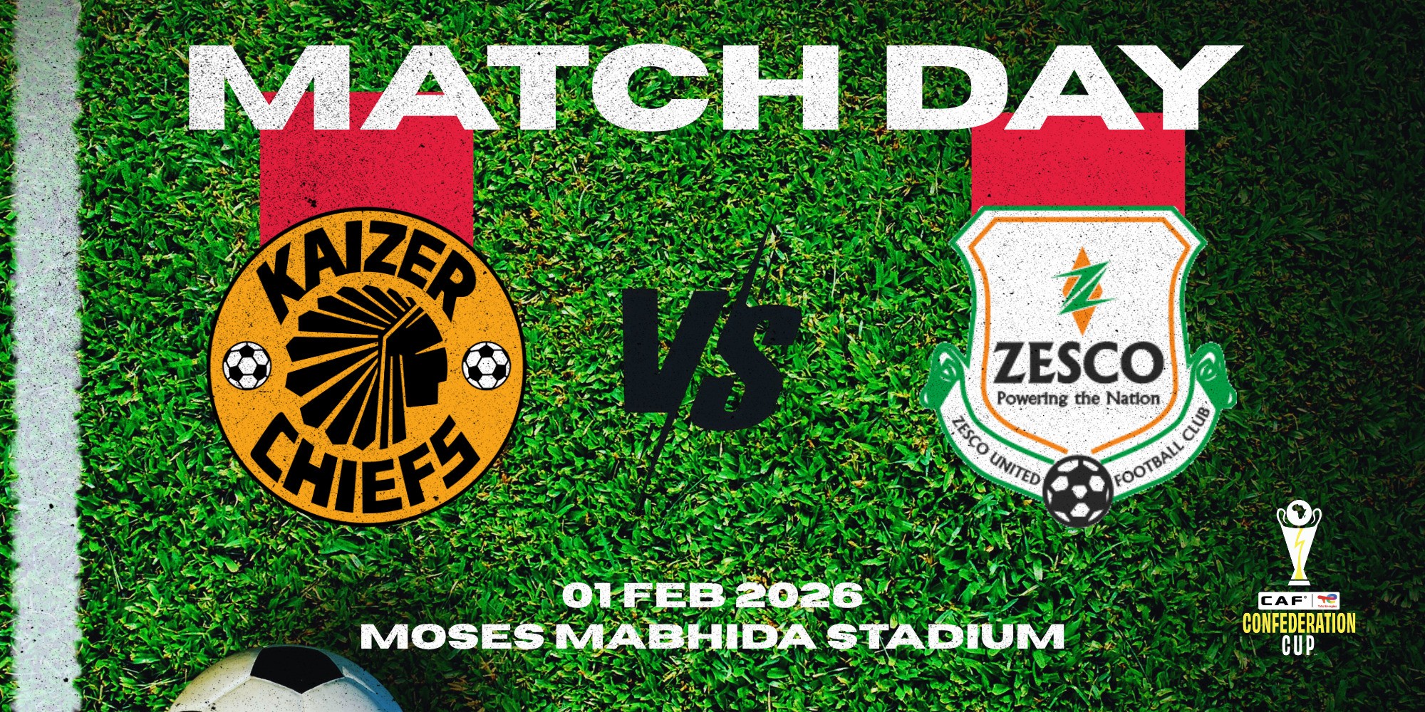 - CAF Confederation Cup match featuring Kaizer Chiefs FC vs Zesco United
