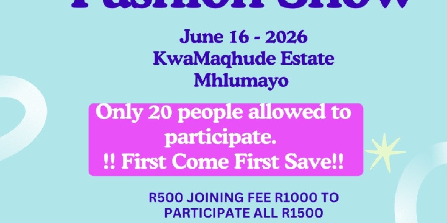 Join the LADYSMITH FASHION SHOW on June 16, 2026, from 10:00 AM to 5:00 PM at Mhlumayo, KwaZulu-Natal, South Africa. Manifest your proficiencies as a fashion designer and showcase your creativity to a vibrant audience. This celebration of style, talent and innovation is ideal for aspiring designers and seasoned professionals alike ? present your collection, connect with industry leaders, network with fellow creatives, and gain exposure in the fashion community. Experience the rhythmic beats of Maskandi enhancing the runway atmosphere. Secure your spot early ? tickets are selling fast for a day filled with creativity, inspiration and opportunity to elevate your fashion career.
