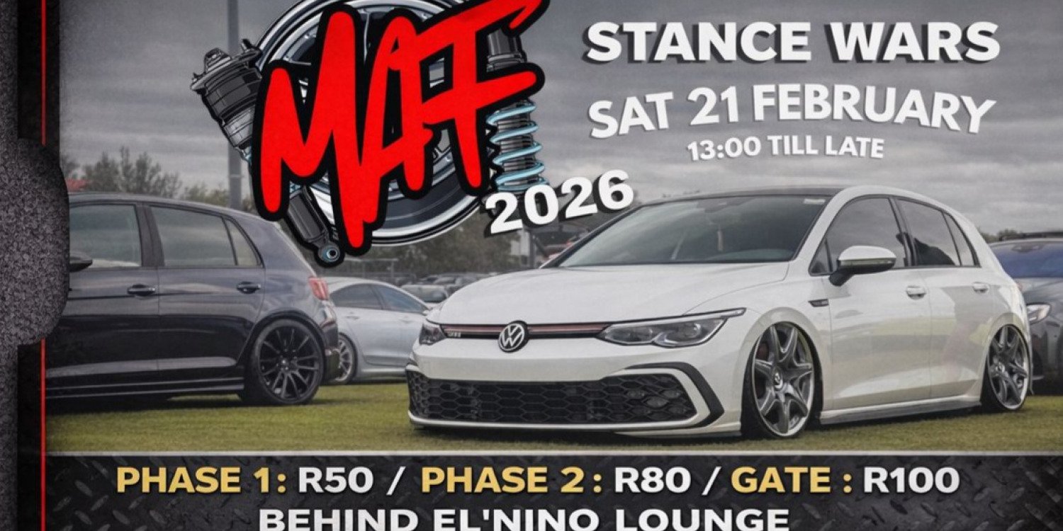 MAF STANCE WARS is an exhilarating automotive show and community festival taking place on February 21, 2026, at Riviera Park, Mafikeng, North West, South Africa. Running from 12:00 PM to 10:00 PM local time, the event celebrates creative vehicle stances and custom car culture. Expect stunning car displays, live DJs, delicious food vendors and a lively atmosphere perfect for families and car enthusiasts alike. Meet fellow enthusiasts, admire unique builds and enjoy music and entertainment throughout the day. Tickets are available in phases ? secure your spot and join us for a memorable day of cars, culture and community at Riviera Park.