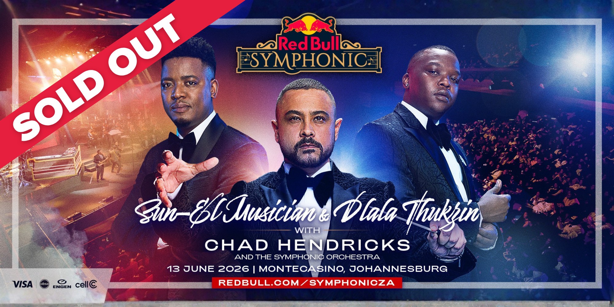 For the first time in South Africa, 2 worlds come together to share the Red Bull Symphonic stage. Sun-El Musician and Dlala Thukzin - leaders, contributors, and architects of the next era of house - join forces with Maestro Chad Hendricks and a full Symphonic orchestra to deliver a once in a lifetime show.