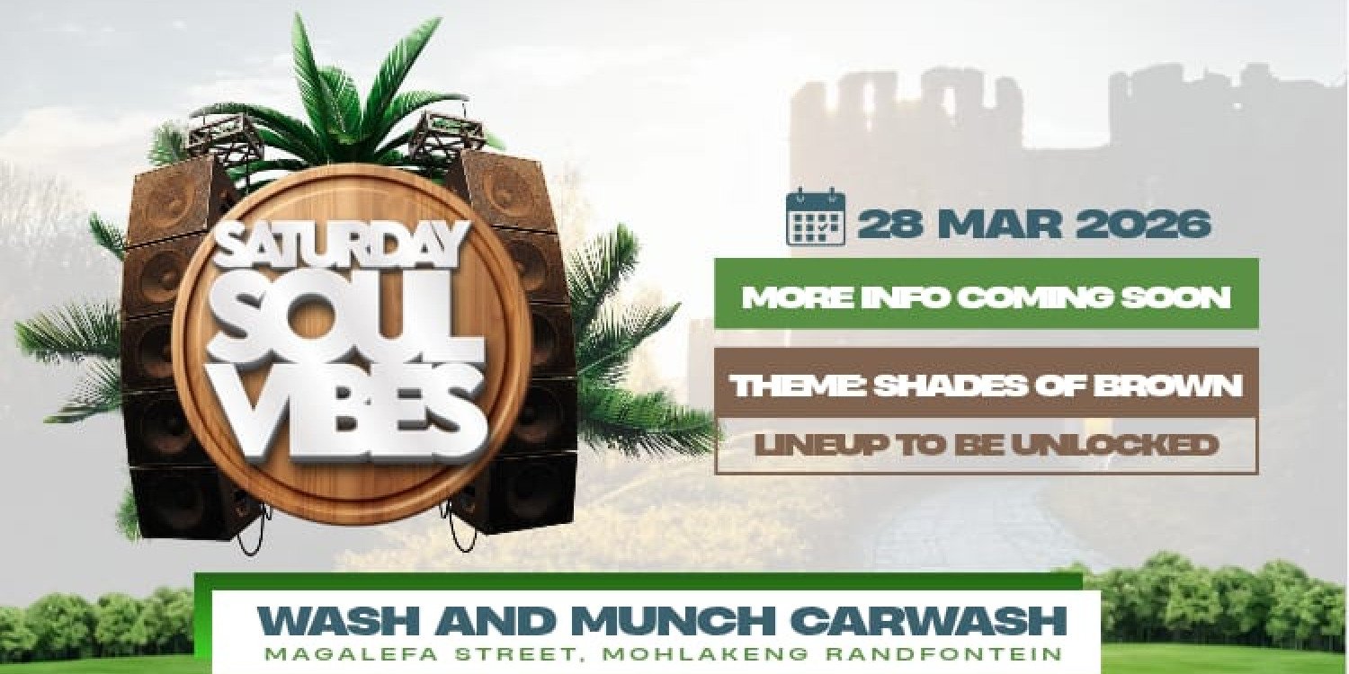 Saturday Soul Vibes: Wash & Munch ? join us on March 28, 2026 for an unforgettable night of soulful rhythms and tasty bites. From 7:00 PM until the early hours at 1332 Magalefa Street, Mohlakeng (Evangelical Church), enjoy live soulful performances from talented artists, a vibrant atmosphere perfect for socializing and delicious munchies to keep you energized as you groove. This event brings music and food together for a memorable celebration ? grab your General Access ticket (R150) and join fellow music lovers for a night that uplifts the spirit and delights the taste buds.