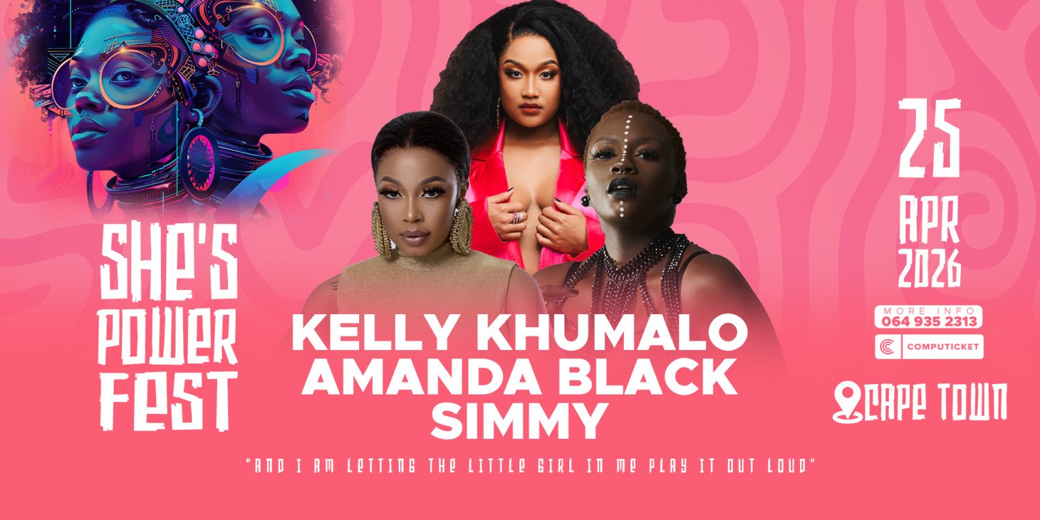 She's Power Fest is a celebration of women who rise, create and lead with strength and grace. Join us on 25 April 2026 at the historic Castle of Good Hope in Cape Town (1:00 PM ? 8:00 PM) for a vibrant day of live performances by Kelly Khumalo, Amanda Black and Simmy, interactive fashion showcases, empowering workshops and community activities that amplify voices and honour resilience. Express yourself in colour, embrace unity and diversity, and be part of a movement that turns every moment into a powerful statement. Tickets include General Access and Priority Entry options ? come ready to celebrate individuality, creativity and empowerment.