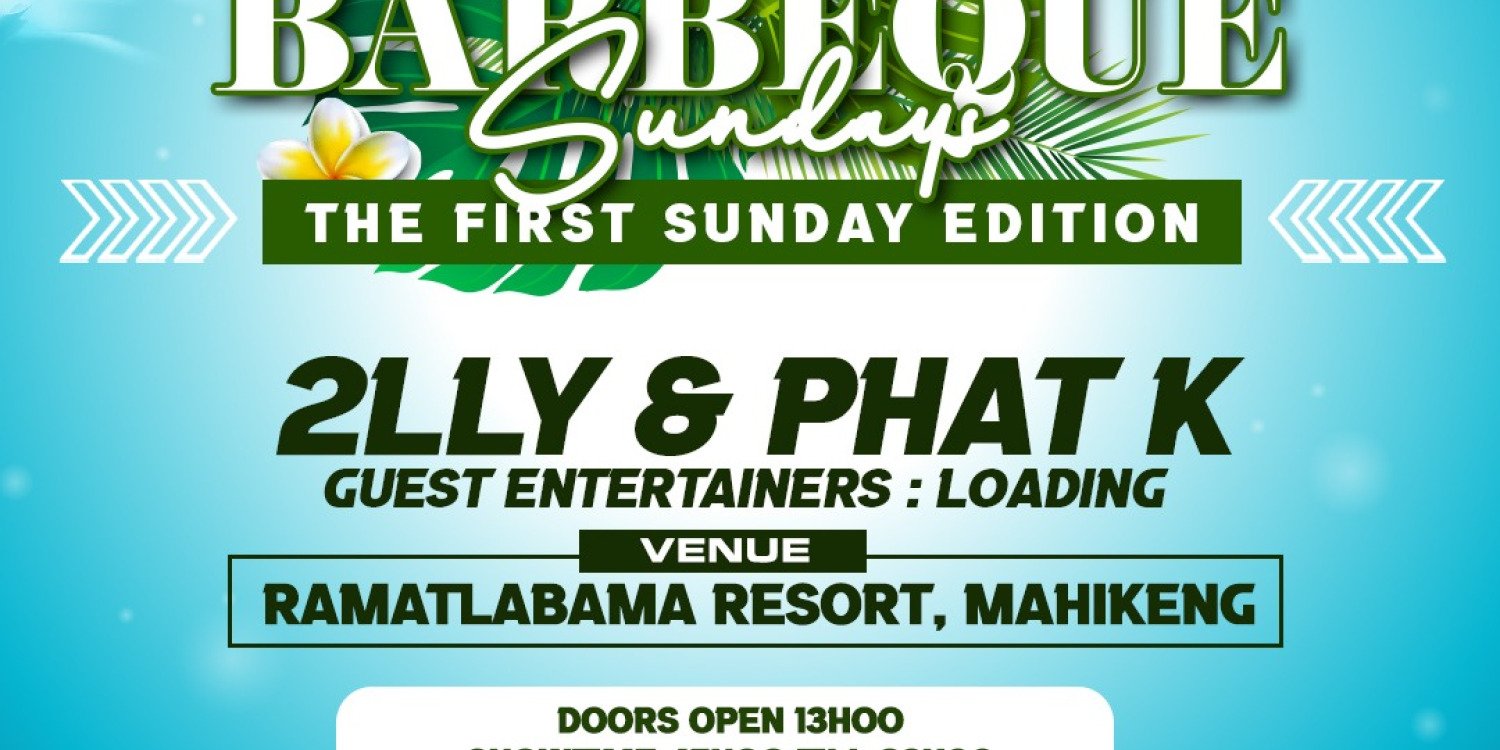 Soul and BBQ Sunday is a music and food-lovers gathering in Mafikeng hosted by Deejays 2LLY and Phat K. Join us at Ramatlabama Resort on 4 January 2026 from 13:00 to 21:00 for a soulful RnB session, delicious barbeque and relaxed outdoor vibes as we usher in 2026 in musical flair. Early Bird tickets are available (limited capacity); please bring valid ID ? this event does not admit guests under 21. Expect great music, tasty food, and a friendly resort atmosphere.